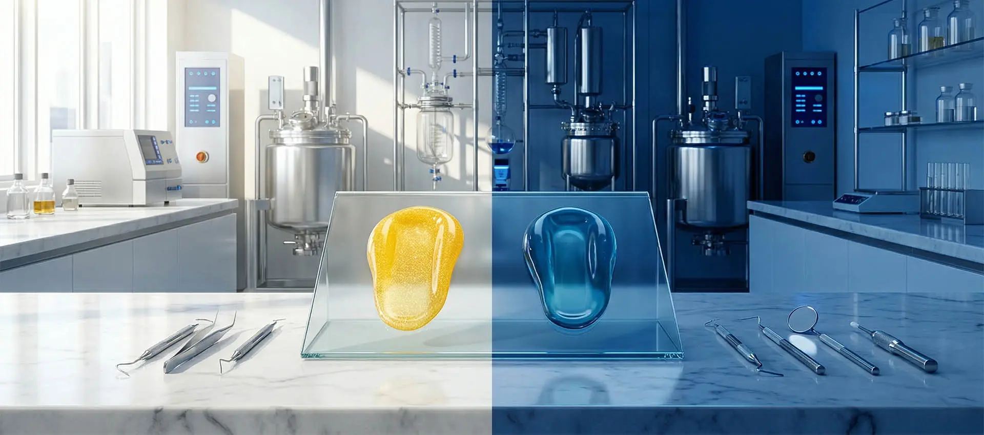 Formule Double Phase conçue pour les marques de dentisterie cosmétique haut de gamme. Sépare le nettoyage à haut polissage (Jour) de la décomposition enzymatique profonde des taches (Nuit).